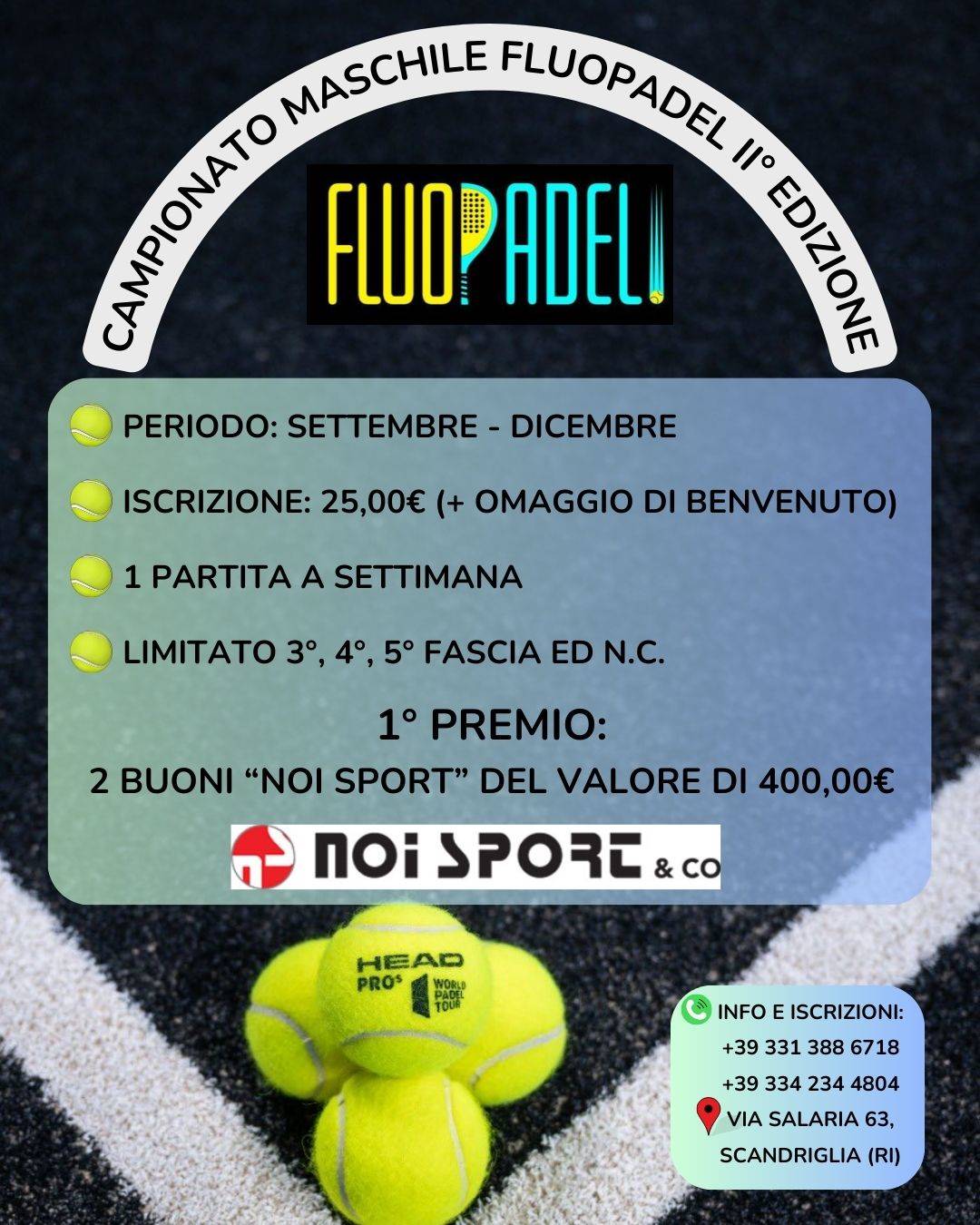 sono aperte le iscrizioni per la II ° Edizione del CAMPIONATO FLUOPADEL MASCHILE 🥎🏆​