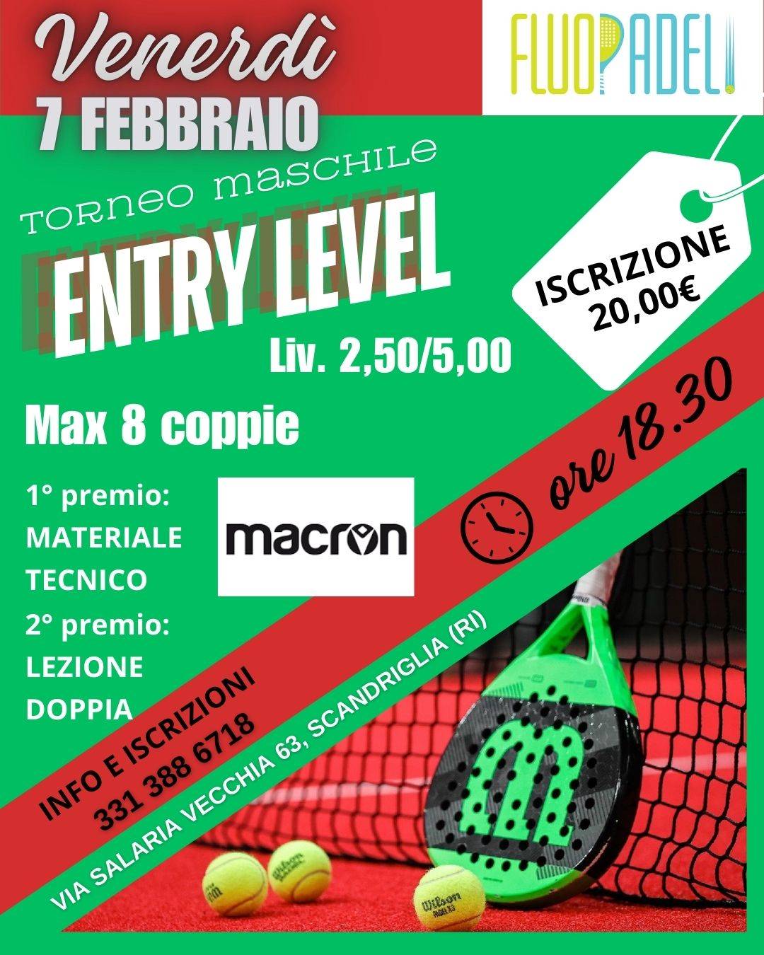 Per info e iscrizioni contattare il FLUOPADEL al numero 3313886718